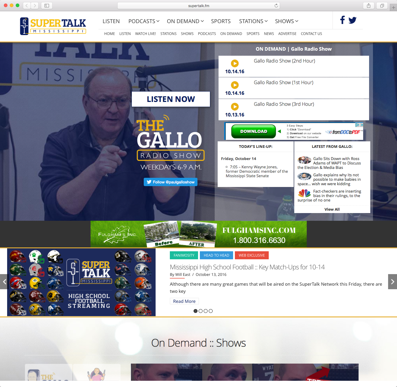 Custom website design for SuperTalk Mississippi. Project includes design and responsive coding with implementation of Wordpress as the Content Management System